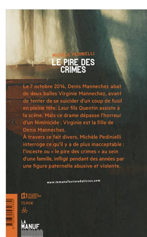 À travers ce fait divers, Michèle Pedinielli interroge ce qu'il y a de plus inacceptable : l'inceste ou « le pire des crimes » au sein d'une famille, infligé pendant des années par une figure paternelle abusive et violente.