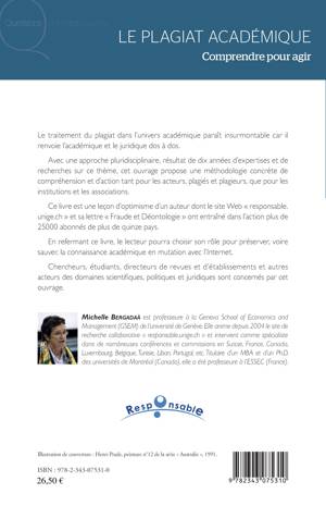 Le traitement du plagiat dans l'univers académique paraît insurmontable car il renvoie l'académique et le juridique dos à dos. Cet ouvrage propose une méthodologie concrète de compréhension et d'action tant pour les acteurs, plagiés et plagieurs, que pour les institutions et associations. En refermant ce livre, le lecteur pourra choisir son rôle pour préserver, voire sauver, la connaissance académique en mutation avec l'Internet. Chercheurs, étudiants, directeurs de revues et d'établissement ou autres acteurs des domaines scientifiques, politiques et juridiques sont concernés par cet ouvrage.