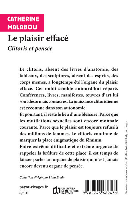 Le clitoris, absent des livres d'anatomie, des tableaux, des sculptures, absent des esprits, des corps mêmes, a longtemps été l'organe du plaisir effacé. Cet oubli semble aujourd'hui réparé. Il est à l'honneur. Conférences, livres, manifestes, oeuvres d'art lui sont désormais consacrés. La jouissance clitoridienne est reconnue dans son autonomie. Les lignes du féminisme ont bougé elles aussi. Et pourtant, il reste le lieu d'une blessure. Parce que les mutilations sexuelles sont encore monnaie courante. Parce que le plaisir est toujours refusé à des millions de femmes. Entre extrême difficulté et extrême urgence de rappeler la brûlure de cette place, il est temps de laisser parler un organe de plaisir qui n'est jamais encore de devenu organe de pensée.