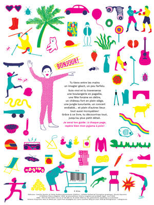 Un très grand imagier cartonné, pour en prendre plein la vue ! Sur la page de droite, une illustration géante fourmillante de détails. Sur la page de gauche, un grand inventaire dans lequel chaque objet de l'image de droite est rangé et nommé. De la boulangerie à la piscine en passant par le château fort, la fête foraine ou la jungle, 16 endroits sont à explorer jusqu'au plus petit détail. Trouverez-vous, à chaque page, le petit garçon au pyjama à pois?