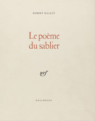 "Le Poème du sablier se divise en deux parties : la première est composée de vers qui vont de douze pieds à un pied, la seconde de vers qui vont d'un pied à douze pieds. Autrement dit, ce poème affecte la forme d'un sablier avec, en son centre, le point le plus resserré par où le sable coule. Il s'agit d'une méditation en face du "livre ouvert à la nuit" qu'est un ciel étoilé. On part de l'angoisse et du doute métaphysique pour aboutir au milieu du poème à la désespérance nihiliste. Après un intervalle blanc qui sépare les strophes descendantes et remontantes et qui représente le point zéro de la conscience, son point d'étranglement, la pensée se reconstitue comme le sable dans le bas du sablier et s'achève au moule de l'alexandrin renouvelé, non par un acte de foi supraterrestre, mais par une adhésion à la vie la plus spirituellement humaine. Même si le livre ouvert à la nuit n'est pas compréhensible, il faut refuser de vivre dans la marge. "Et tout reste possible". Le sablier, par sa mission et sa forme, m'a tenté, car je ne suis pas insensible aux analogies mystérieuses (et fantaisistes aussi, pourquoi pas ?)." Robert Mallet.