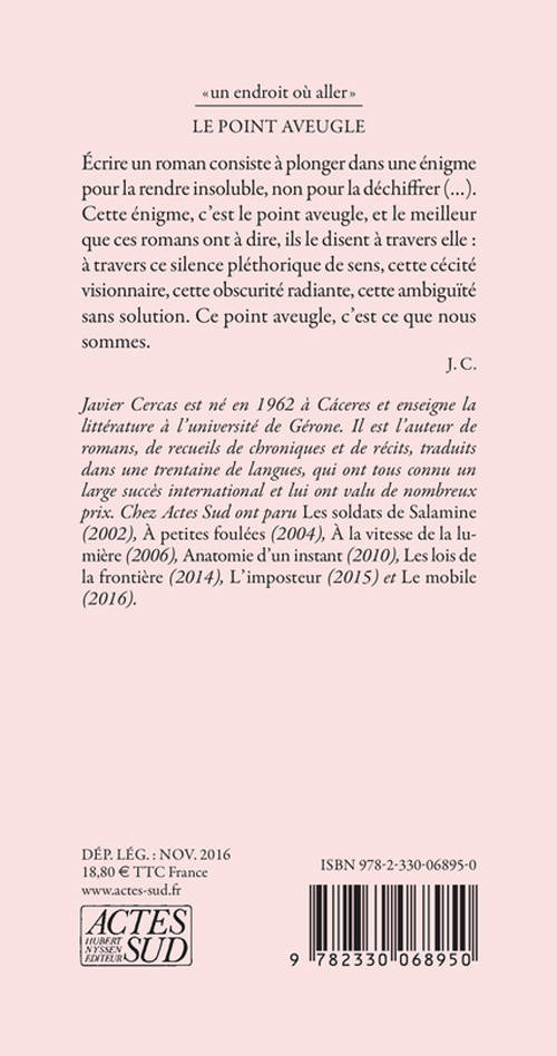 Ce recueil rassemble les conférences données par l'auteur à l'université d'Oxford. Sur les questions sans réponses, les énigmes insolubles et les ambigüités nécessaires qui font l'essence du roman et placent le lecteur en son centre : le point aveugle.