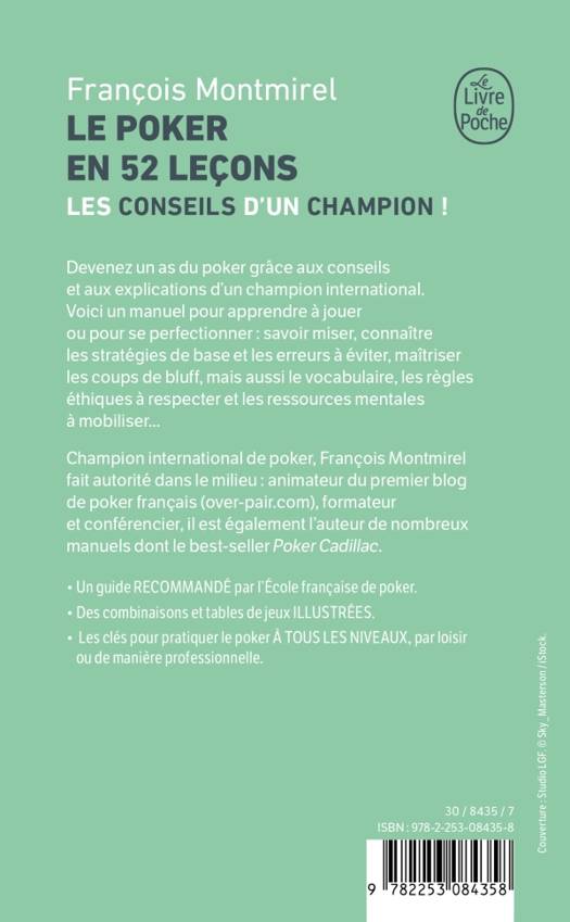 François Montmirel, champion international, est l’auteur de nombreux manuels depuis 1984, dont le best-seller Poker Cadillac.
