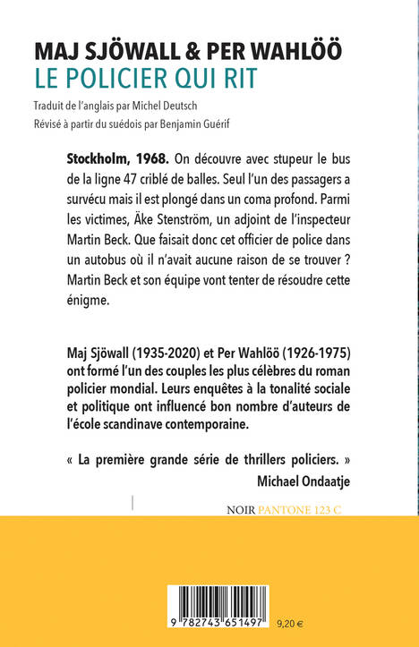 Maj Sjöwall (1935-2020) et Per Wahlöö (1926-1975) ont formé l'un des couples les plus célèbres du roman policier mondial. Leurs enquêtes à la tonalité sociale et politique ont influencé bon nombre d'auteurs de l'école scandinave contemporaine.