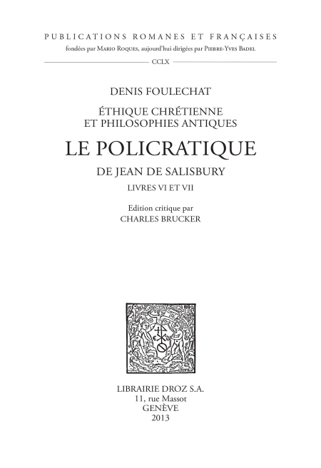 Achever le Livre VII sur la notion de liberté, une liberté pratique ayant forcément une incidence sur la vie de l’homme politique et sa manière de gouverner, n’a rien d’un geste innocent quand on sait comment finira le Livre VIII, qui clôt le Policraticus par une longue argumentation sur le tyran et la tyrannie (chapitres 17-23). Bien plus significatifs encore sont les derniers propos du dernier chapitre du Livre VIII qui donnent une résonance nouvelle à la liberté qui, d’une certaine manière, prend sa source dans la charité, notion qui jalonne l’ensemble du Livre VII. En fin de compte, charité et liberté sont les maîtres mots qui couronnent la vision du monde de Jean de Salisbury et que Charles le Sage avait déjà inscrits dans son coeur.