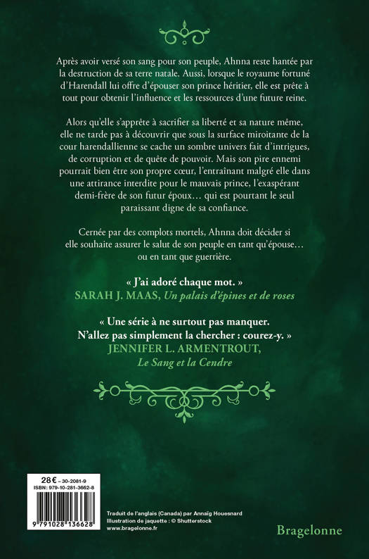 Alors qu'elle s'apprête à sacrifier sa liberté et sa nature même, elle ne tarde pas à découvrir que sous la surface miroitante de la cour harendallienne se cache un sombre univers fait d'intrigues, de corruption et de quête de pouvoir. Mais son pire ennemi pourrait bien être son propre coeur, l'entraînant malgré elle dans une attirance interdite pour le mauvais prince, l'exaspérant demi-frère de son futur époux... qui est pourtant le seul paraissant digne de sa confiance.