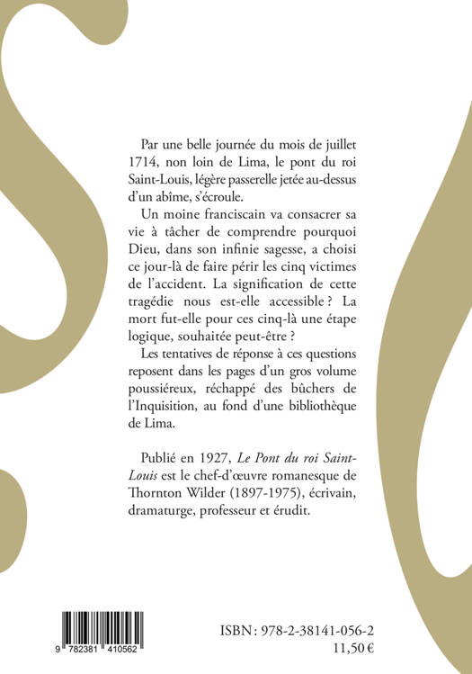 Publié en 1927, Le Pont du roi Saint-Louis est le chef-d’œuvre romanesque de Thornton Wilder (1897-1975), écrivain, dramaturge, professeur et érudit.