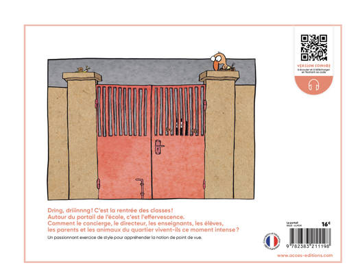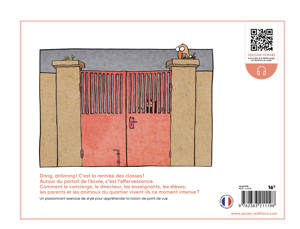 Dring driiinnng ! C‘est la rentrée des classes ! Autour du portail de l’école, c’est l’effervescence. Comment le concierge, le directeur, les enseignants, les élèves, les parents et les animaux du quartier vivent-ils ce moment intense ?