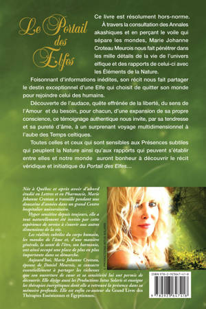 À travers l'Akasha et en perçant le voile qui sépare les mondes, Marie Johanne Croteau Meurois nous fait pénétrer dans les mille détails de la vie de l'univers elfique et des rapports de celui-ci avec les Éléments de la Nature. Foisonnant d'informations inédites, son récit nous fait partager le destin exceptionnel d'une Elfe qui choisit de quitter son monde pour rejoindre celui des humains. Quête effrénée de la liberté, du sens de l'Amour et du besoin, pour chacun, d'une expansion de sa propre conscience, ce témoignage nous invite, par sa tendresse et sa pureté d'âme, à un surprenant voyage multidimensionnel à l'aube des Temps celtiques. Un livre hors norme pour mieux comprendre les Présences subtiles qui peuplent la Nature. Préface de Daniel Meurois et Illustrations de Sandrine Gestin.