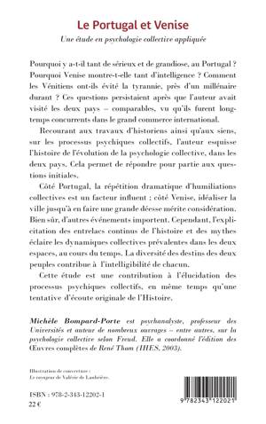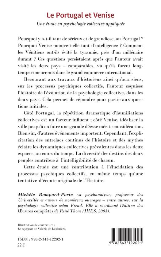 Pourquoi y a-t-il tant de sérieux et de grandiose au Portugal ? Pourquoi Venise montre-t-elle tant d'intelligence ? Comment les Vénitiens ont-ils évité la tyrannie, près d'un millénaire durant ? L'auteur répond en partie à ces questions en esquissant l'histoire de l'évolution de la psychologie collective dans les deux pays. Cette étude est une contribution à l'élucidation des processus psychiques collectifs, en même temps qu'une tentative d'écoute originale de l'Histoire.