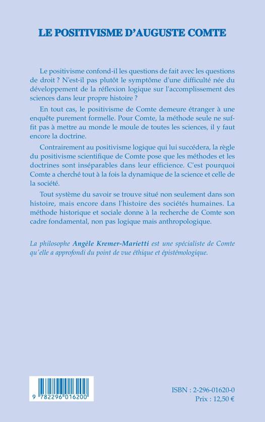 Contrairement au positivisme logique qui lui succédera, la règle du positivisme scientifique de Comte pose que les méthodes et les doctrines sont inséparables dans leur efficience : il faut donc rechercher tout à la fois la dynamique de la science et celle de la société, pour resituer l'histoire des systèmes de savoir dans l'histoire des sociétés humaines. Les travaux de Comte acquièrent ainsi une véritable dimension anthropologique.