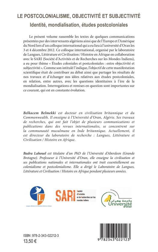 Le présent volume présente des communications issues du colloque international ayant eu lieu à Oran les 3 et 4 décembre 2012. En ayant pour réflexion centrale la relation entre les questions identitaires à l'ère de la mondialisation, cet ouvrage pose une question essentielle : dans la période actuelle, les méthodologies postcoloniales ont-elles contribué au dépassement des représentations de l'autre entachées de préjugés qui marquèrent la période coloniale ?