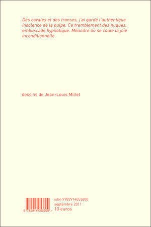 EXTRAIT : J’ai mordu, bafouillé comme d’autres se lovent et jouissent. J’ai camouflé ma soif dans une cargaison de vertige. Trouvé dans le caniveau, une pépite lustrale. Sur les crêtes frontalières, j’ai fait récolte de courbes sereines. Amulettes fertiles. Clarté rayonnante. Trouvé le noyau de la féminité caché dans les arbres. Des cavales et des transes, j’ai gardé l’authentique insolence de la pulpe. Ce tremblement des nuques, embuscade hypnotique. Méandre où se coule la joie inconditionnelle. Dans ma soif, j’ai la vision d’un oiseau ensorceleur posé sur la branche haute d’un cèdre.