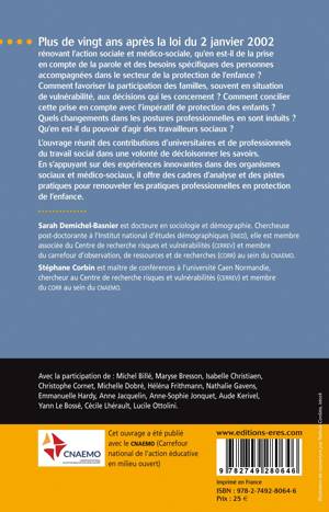 Depuis le début des années 2000, le législateur impose aux travailleurs sociaux de favoriser la participation des personnes aidées, accompagnées et accueillies aux décisions qui les concernent. Or, dans le secteur de la Protection de l’enfance, cet objectif doit être concilié avec la nécessité de protéger des enfants et des jeunes. En croisant les regards de chercheurs et de professionnels, cet ouvrage s’attache à saisir la complexité des situations et propose des pistes d’action.