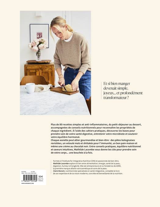 Chaque assiette peut allier gourmandise et bien-être : des pâtes bolognaises revisitées, un velouté maïs et shiitakés pour l'immunité, un bon pain maison et même une crème au chocolat noir. Entre conseils pratiques, équilibre nutritionnel et saveurs intuitives, Mathilde Lacombe vous donne les clés pour prendre soin de votre corps ... une bouchée à la fois.