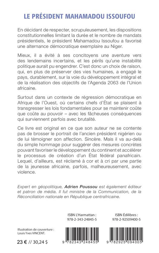 En décidant de respecter, scrupuleusement, les dispositions constitutionnelles limitant la durée et le nombre de mandats présidentiels, le président Mahamadou Issoufou a favorisé une alternance démocratique exemplaire au Niger. Mieux, il a évité à ses concitoyens une aventure vers des lendemains incertains, et les périls qu’une instabilité politique aurait pu engendrer. C’est donc un choix de raison, qui, en plus de préserver des vies humaines, a engagé le pays, durablement, sur la voie du développement intégral et de la réalisation des objectifs de l’Agenda 2063 de l’Union africaine. Ce livre est original en ce que son auteur ne se contente pas de brosser le portrait de l’ancien président nigérien ou de lui témoigner son affection. Il va au-delà du simple hommage pour suggérer des mesures concrètes pouvant favoriser le développement du continent et accélérer le processus de création d’un État fédéral panafricain.