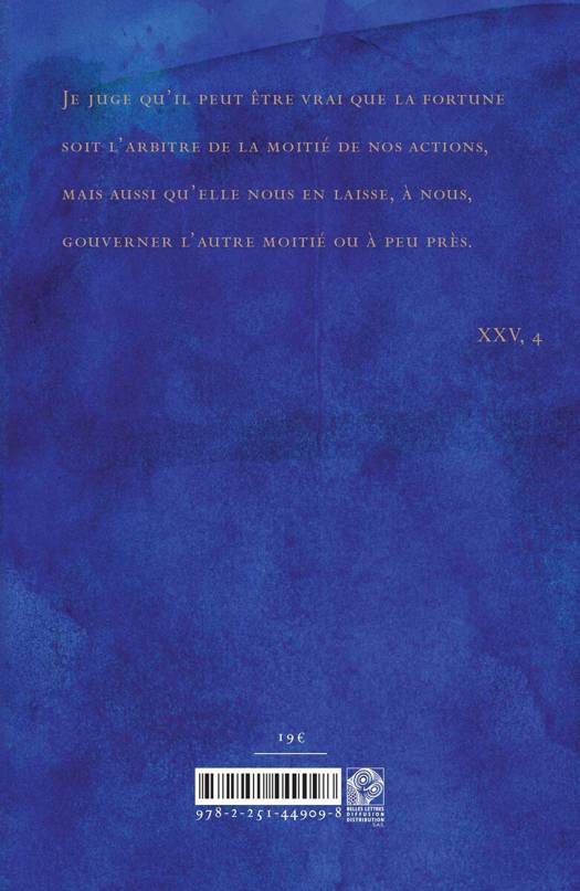 Je juge qu'il peut etre vrai que la fortune soit l'arbitre de la moitie de nos actions, mais aussi qu'elle nous en laisse, a nous, gouverner l'autre moitie ou a peu pres.