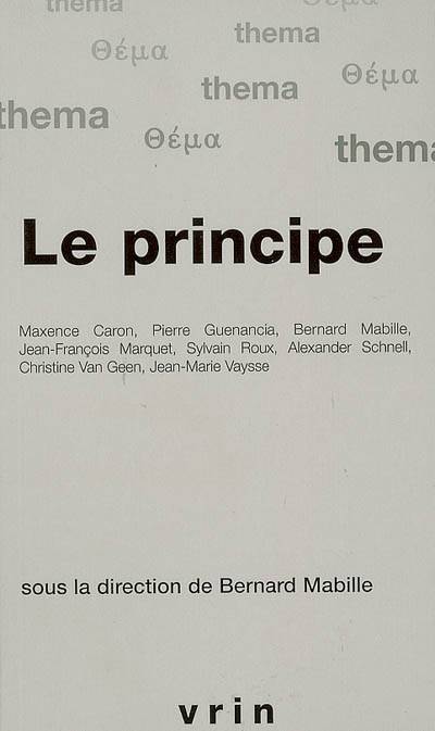 Ce volume est une analyse conceptuelle et historique des figures et des apories de la pensee principielle. La contribution de B. Mabille s'appuie sur l'etude de la demarche radicale du neoplatonisme pour esquisser les lignes fondamentales d'une philosophie premiere du principe. S. Roux part de la theorie platonicienne du Bien et deploie les critiques fondamentales qu'Aristote lui adresse. M. Caron, en prenant pour fil directeur la lecture du Prologue de Jean par Augustin, montre comment l'apport chretien a la pensee principielle n'est pas seulement conceptuel mais engage une relation personnelle qui se deploie dans le Mystere de la Trinite. P. Guenancia degage, a partir d'une lecture croisee de Descartes et de Pascal, deux attitudes paradigmatiques de confiance et de doute a l'egard de l'integrale rationalite des principes. J.-M. Vaysse s'appuie sur Kant pour etudier le tournant moderne d'une reflexion sur le principe centree sur la question de la connaissance. Il discerne dans la philosophie transcendantale l'ouverture vers une pensee du fond abyssal que Schelling prolonge et qui devient centrale chez Heidegger. J.-F. Marquet explique comment Schopenhauer met le principe de raison en crise et oriente la philosophie vers un tournant hermeneutique qui s'epanouit a partir de Nietzsche. Chr. Van Geen se concentre sur la figure de Wittgenstein dont le Tractatus pose une ineffabilite du principe que les Recherches philosophiques expliquent en problematisant la question de la signification. Enfin, A. Schnell a travers une clarification des themes du principe et du fondement chez Heidegger, montre comment leur signification se joue dans une pensee originale du temps et de la liberte.