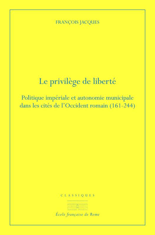 De l'époque grecque classique à l'Antiquité tardive, la cité - polis en grec, civitas en latin - constitue un système politique dominant parmi les peuples de la Méditerranée. Mais qu'advient-il de ce modèle d'organisation quand, à la fin du Ier siècle avant notre ère, Octave-Auguste fonde un empire territorial, le plus vaste avant jamais existé ? Publié en 1984, cet ouvrage a ouvert des perspectives originales sur la question des relations entre le pouvoir impérial romain et les habitants des cités. À partir d'enquêtes documentaires minutieuses, François Jacques a démontré que l'autonomie et le dynamisme des communautés locales ne furent pas compromis par l'intervention des princes et de leurs agents. Au contraire, cette liberté, sans cesse défendue et préservée, contribua jusque tard dans le IIIe siècle à la cohésion et à l'intégration des nombreux peuples qui composaient l'imperium Romanum.