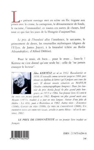 Le présent ouvrage met en scène un flic tsigane aux prises avec le crime, la corruption, le détournement de fonds, le racisme, l'immoralité, et toutes ces sortes de choses, bref tout ce qui fait les joies de la Hongrie d'aujourd'hui. Cet ouvrage allie l'insolence, le sarcasme, le grincement de dents, les trouvailles stylistiques (dignes de L'""Ulysse"" de James Joyce), à la brutalité (chère au ""Berlin Alexanderplatz"", d'Alfred Doblin). Il s'agit là du premier livre traduit en français de l'auteur Akos KERTESZ.