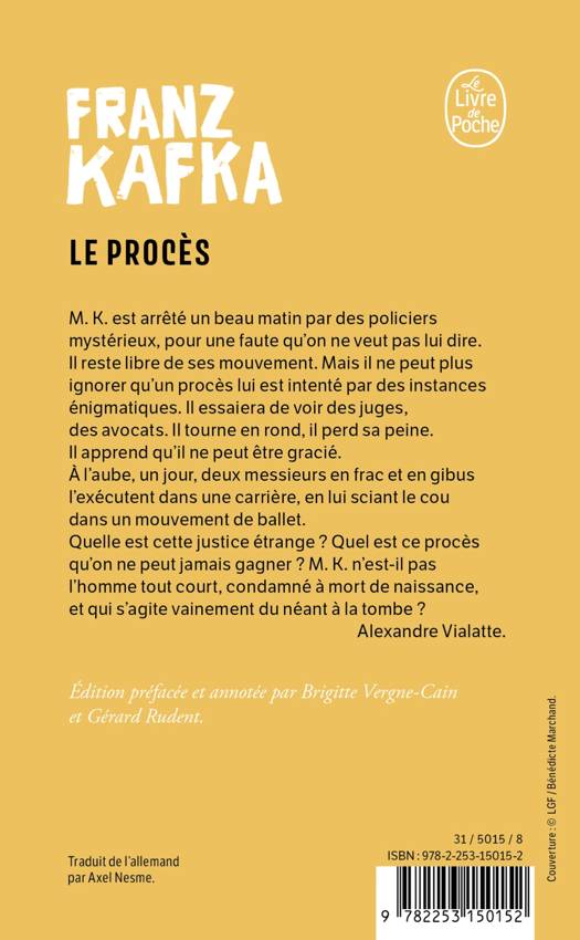 « Quelle est cette justice étrange ? Quel est ce Procès qu'on ne peut jamais gagner ? M. K. n'est-il pas l'homme tout court, condamné à mort de naissance, et qui s'agite vainement du néant à la tombe ? »