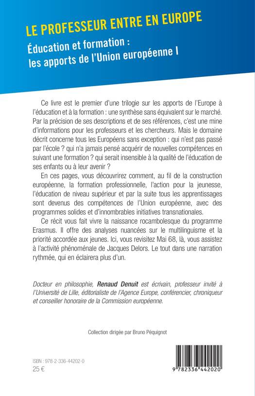 Ce livre est le premier d’une trilogie sur les apports de l’Europe à l’éducation et à la formation : une synthèse sans équivalent sur le marché. Par la précision de ses descriptions et de ses références, c’est une mine d’informations pour les professeurs et les chercheurs. Mais le domaine décrit concerne tous les Européens sans exception : qui n’est pas passé par l’école ? qui n’a jamais pensé acquérir de nouvelles compétences en suivant une formation ? qui serait insensible à la qualité de l’éducation de ses enfants ou à leur avenir ? En ces pages, vous découvrirez comment, au fil de la construction européenne, la formation professionnelle, l’action pour la jeunesse, l’éducation de niveau supérieur et par la suite tous les apprentissages sont devenus des compétences de l’Union européenne, avec des programmes solides et d’innombrables initiatives transnationales. Ce récit vous fait vivre la naissance rocambolesque du programme Erasmus. Il offre des analyses nuancées sur le multilinguisme et la priorité accordée aux jeunes. Ici, vous revisitez Mai 68, là, vous assistez à l’activité phénoménale de Jacques Delors. Le tout dans une narration rythmée, qui en éclairera plus d’un.