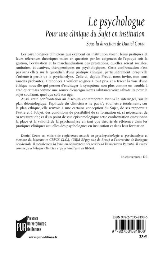 Les psychologues cliniciens qui exercent en institution voient leurs pratiques et leurs références théoriques mises en question par les exigences de l'époque : la gestion, l'évaluation et la marchandisation des prestations, qu'elles soient sociales, sanitaires, éducatives, thérapeutiques ou psychologiques. Cette confrontation au discours contemporain vient interroger, sur le plan déontologique, l'aptitude du clinicien à ne pas s'y soumettre totalement.