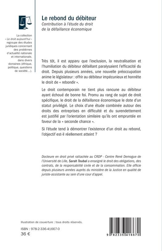 Très tôt, il est apparu que l'exclusion, la neutralisation et l'humiliation du débiteur défaillant paralysaient l'efficacité du droit. Depuis plusieurs années, une nouvelle préoccupation anime le législateur: offrir au débiteur impécunieux et honnête le droit de rebondir . Le droit contemporain ne tient plus rancune au débiteur ayant échoué de bonne foi. Promu au rang de sujet de droit spécifique, le droit de la défaillance économique le dote d'un statut privilégié. Le choix d'une étude combinée autour des droits des entreprises en difficulté et du surendettement est justifié par l'orientation similaire qu'ils ont empruntée en faveur de la seconde chance . Si l'étude tend à démontrer l'existence d'un droit au rebond, l'objectif est-il réellement atteint ?