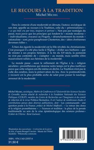 Dans une modernité en déroute, l'auteur, sociologue, appelle au recours à la Tradition, celle du pérennialisme. Non pas par nostalgie, mais parce que les principes qui fondent le monde moderne (individualisme, croyance au Progrès, désenchantement du monde rationaliste) sont, pour paraphraser Chesterton, des idées chrétiennes devenues folles . À bien des égards la modernité est la fille révoltée du christianisme. C'est pourquoi il a été plus facile à l'Église d'aller aux barbares que de résister à ses propres hérésies. À la fin du XXe siècle, la pastorale ne s'est pas contentée de s'adapter au monde, mais semble s'être massivement ralliée à la modernité. Le monde passe; aussi le ralliement de l'Église à la religion séculière prométhéenne qui nous domine est le plus inefficace parce que cette religion est en déclin. La Tradition n'est pas le culte des cendres, mais la préservation du feu. Avec la postmodernité, y recourir est la plus probable arche de salut pour passer le naufrage annoncé.