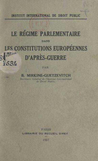 Le régime parlementaire dans les constitutions européennes d'après guerre EBOOK