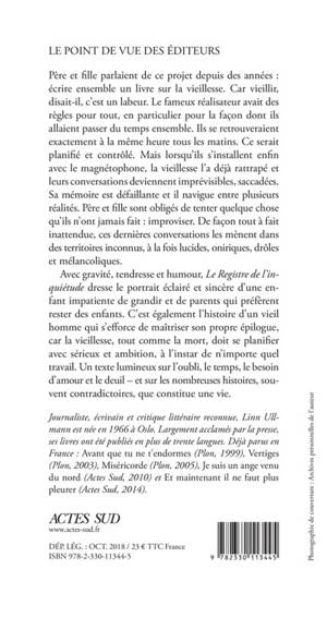 Avec gravité, tendresse et humour, «Le Registre de l'inquiétude »dresse le portrait éclairé et sincère d'une enfant impatiente de grandir et de parents qui préfèrent rester des enfants. C'est également l'histoire d'un vieil homme qui s'efforce de maîtriser son propre épilogue, car la vieillesse, tout comme la mort, doit se planifier avec sérieux et ambition, à l'instar de n'importe quel travail. Un texte lumineux sur l'oubli, le temps, le besoin d'amour et le deuil - et sur les nombreuses histoires, souvent contradictoires, que constitue une vie.