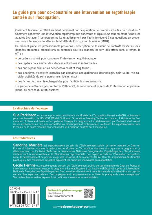 Comment favoriser le rétablissement personnel par l’exploration de diverses activités du quotidien ? Comment concevoir une intervention ergothérapique cohérente et rigoureuse tout en étant flexible et adaptée à chacun ? Le programme Le rétablissement par l’activité répond à ces questions en proposant une intervention fondée sur le Modèle de l’occupation humaine (MOH).