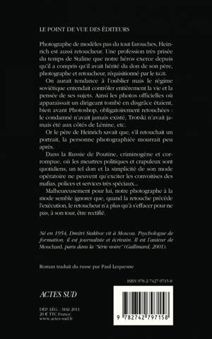 En URSS, le "retoucheur" effaçait les ennemis en disgrâce des photographies officielles. Mais quand la retouche précède l'exécution, le retoucheur n'a plus qu'à "s'effacer" pour ne pas, à son tour, être "rectifié"... Un thriller mystique qui illustre à merveille les récentes révélations de Wikileaks sur le régime mafieux de Vladimir Poutine!