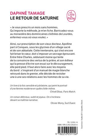 Ainsi, sur prescription de son vieux docteur, Apolline part à Conques, sous les glycines d’un village sacré et de son abbatiale. Cette trentenaire, qui s’est encore fait briser le cœur, doit s’imposer un sevrage éprouvant. Entre frère Charles, séduisant moine qui tente de la convaincre des vertus de la prière, et son éditeur qui la presse d’écrire son essai sur le découragement, elle perd pied. Il faut alors faire avec les moyens du bord  : s’inspirant d’un manuel de magie blanche retrouvée dans le grenier, elle décide de revisiter une à une ses relations avec les hommes de sa vie.