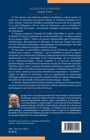 La Voix divine, nous disent les mythes et traditions, a créé le monde. Le chant des voix humaines lui répond. Orphée, l’initié des Mystères grecs, personnifie les pouvoirs de la musique. De nos jours, le matérialisme scientiste qui nie l’harmonie cosmique est démenti par la science « holistique » qui rejoint la sagesse ancestrale. Au confluent de la physique contemporaine et de la métaphysique traditionnelle, de la cosmologie et de l’anthropologie, de la musicologie et de l’ethnomusicologie, cet ouvrage contribue à ce nouveau paradigme en élucidant les arcanes de l’harmonie musicale. Il lui restitue sa dimension symbolique et spirituelle et éclaire l’évolution confuse de la musique occidentale depuis le début du xxe siècle.