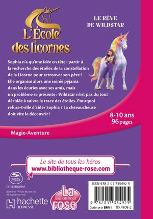 Sophia n’a qu’une idée en tête : partir à la recherche des étoiles de la constellation de la Licorne pour retrouver son père ! Elle organise alors une soirée pyjama dans les écuries avec ses amis, mais un problème se présente : Wildstar n’est pas du tout décidée à suivre la trace des étoiles. Pourquoi refuse-t-elle d’aider Sophia ? La chevaucheuse doit vite le découvrir !