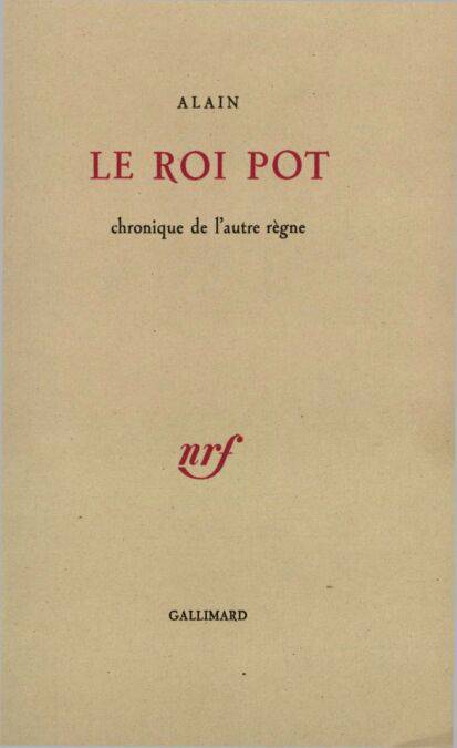 On sait qu'Alain fit la guerre de 1914-18 comme canonnier. De cette expérience est né, entre autres, Mars ou La Guerre jugée. Le Roi Pot pourrait bien être, sous une forme très différente, un état antérieur de ce chef-d'œuvre. Avec Le Roi Pot, resté inédit, Alain avait voulu écrire une sorte de roman satirique, dans la manière du XVIIIe siècle. Son héros s'appelle Urbain ; c'est un gentil militaire qui raisonne naïvement – mais non sans subtilité, on s'en doute – sur toutes sortes de sujets se rapportant au métier des armes. Le pays qu'il sert s'appelle la Poterie. Quant au Roi Pot, c'est le symbole du pouvoir aveugle et sourd. Urbain fait la guerre. Et il la juge avec la hauteur, la liberté, la cruauté, souvent, d'Alain lui-même.