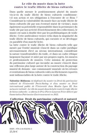 Dans quelle mesure le positionnement pluriel du musée vis-à-vis du trafic illicite de biens culturels conditionne-t-il son action et ses obligations à l'encontre de ce fléau ? Considérant la vulnérabilité du musée face au trafic illicite de biens culturels (de par son éventuel statut de victime), mais également sa potentielle responsabilité dans la persistance du trafic (de par son activité d'enrichissement des collections), le musée est saisi à double titre par les problématiques de trafic illicite. Cette ambivalence trouve écho dans la singularité du trafic illicite de biens culturels, qui coexiste et se développe en parallèle d'un marché licite. La lutte contre le trafic illicite de biens culturels telle que menée par l'entité muséale s'inscrit dans un cadre juridique nécessairement élevé au niveau international, considérant la nature transfrontalière du trafic, et dans un cadre éthique largement façonné et mûri par ses propres sujets, les musées et professionnels de musées. Cette mission de protection du patrimoine culturel qui incombe au musée s'inscrit dans une réflexion plus large autour de la construction du paysage muséal de demain: une communauté muséale où les retours et restitutions de biens culturels volés ou illicitement exportés sont indissociables de la lutte contre le trafic illicite.