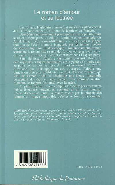 Les romans Harlequin connaissent un succès phénoménal dans le monde entier. Sans délaisser l'analyse du contenu, Annik Houel se démarque des critiques habituelles sur le genre en s'intéressant au point de vue des lectrices. A la part nécessaire de rêve et d'évasion que leur apportent ces ouvrages, s'ajoute une dimension bien plus troublante : derrière le stéréotype viril de l'amant idéal se dissimule une figure maternelle permettant de régresser sans danger à la première relation d'amour, le rapport fusionnel à la mère.