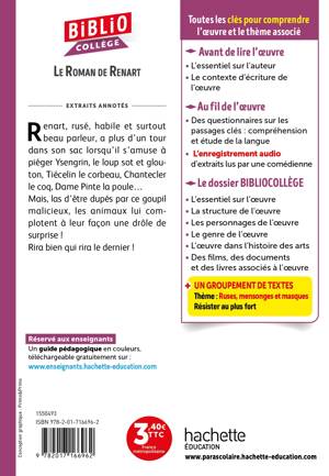 Renart, rusé, habile et surtout beau parleur, a plus d’un tour dans son sac lorsqu’il s’amuse à piéger Ysengrin, le loup sot et glouton, Tiécelin le corbeau, Chantecler le coq, Dame Pinte la poule…