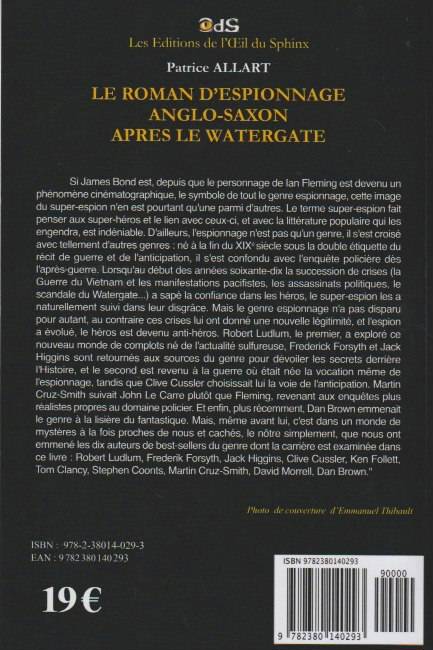 Si James Bond est, depuis que le personnage de Ian Fleming est devenu un phénomène cinématographique, le symbole de tout le genre espionnage, cette image du super-espion n'en est pourtant qu'une parmi d'autres. Le terme super-espion fait penser aux super-héros et le lien avec ceux-ci, et avec la littérature populaire qui les engendra, est indéniable. D'ailleurs, l'espionnage n'est pas qu'un genre, il s'est croisé avec tellement d'autres genres: né à la fin du XIXe siècle sous la double étiquette du récit de guerre et de l'anticipation, il s'est confondu avec l'enquête policière dès l'après-guerre. Lorsqu'au début des années soixante-dix la succession de crises (la Guerre du Vietnam et les manifestations pacifistes, les assassinats politiques, le scandale du Watergate...) a sapé la confiance dans les héros, le super-espion les a naturellement suivi dans leur disgrâce. Mais le genre espionnage n'a pas disparu pour autant, au contraire ces crises lui ont donné une nouvelle légitimité, et l'espion a évolué, le héros est devenu anti-héros. Robert Ludlum, le premier, a exploré ce nouveau monde de complots né de l'actualité sulfureuse, Frederick Forsyth et Jack Higgins sont retournés aux sources du genre pour dévoiler les secrets derrière l'Histoire, et le second est revenu à la guerre où était née la vocation même de l'espionnage, tandis que Clive Cussler choisissait lui la voie de l'anticipation. Martin Cruz-Smith suivait John Le Carre plutôt que Fleming, revenant aux enquêtes plus réalistes propres au domaine policier. Et enfin, plus récemment, Dan Brown emmenait le genre à la lisière du fantastique. Mais, même avant lui, c'est dans un monde de mystères à la fois proches de nous et cachés, le nôtre simplement, que nous ont emmené les dix auteurs de best-sellers du genre dont la carrière est examinée dans ce livre: Robert Ludlum, Frederik Forsyth, Jack Higgins, Clive Cussler, Ken Follett, Tom Clancy, Stephen Coonts, Martin Cruz-Smith, David Morrell, Dan Brown."