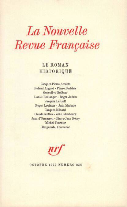 Historiens et critiques : Jacques Le Goff, Naissance du roman historique au XII<sup>e</sup> siècle? Roland Auguet, L'image de Rome Jean Markale, Les Celtes contre l'histoire ou L'histoire contre les Celtes? Geneviève Bollème, Des romans égarés Jacques Ménard, Lukács et la théorie du roman historique Roger Lewinter, Pommes d'or, mécaniques orange Roger Judrin, L'imagination du vrai Pierre Barbéris - Jacques Bersani - Claude Mettra, De l'histoire innocente à l'histoire impure (Entretien)