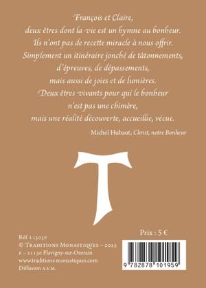 François et Claire, deux êtres dont la vie est un chant de louange. Les citations de ce livret en sont l'écho... "Ô Très-Puissant Seigneur, Ton nom soit béni !" "Moi, Frère François, votre petit serviteur, je vous supplie dans l'amour qu'est Dieu d'accueillir ... avec humilité et charité, ces paroles toutes parfumées de Notre-Seigneur Jésus-Christ."