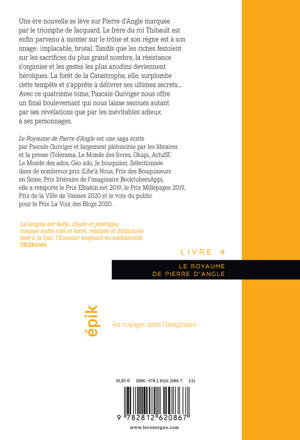 Un nouveau jour se lève sur le royaume de Pierre d'Angle et avec lui arrive la certitude que rien ne sera plus comme avant. Ema, Lysandre, Lucas et tous les habitants de l'île s'apprêtent à affronter le plus grand changement qu'ils n'aient jamais connu. Un bouleversement, aussi sanglant que brutal, mettant un terme au fonctionnement utopique du royaume. Mais tandis que certains se résignent déjà, d'autres organisent la résistance. La forêt de la Catastrophe, elle, surplombe cette tempête et s'apprête à délivrer ses ultimes secrets...