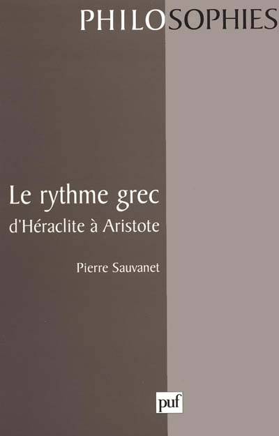 Chez Démocrite, c'est un concept original servant à désigner la forme des atomes en mouvement, chez certains sophistes, il caractérise la nature matérielle. Avec Platon et Arisote, le rythme prend définitivement son sens musical et poétique. Le recours systématique aux textes montre que le terme rythme a d'abord caractérisé "la forme ou la figure dans leur relation au temps". On pourrait dire que le rythme grec a ceci de particulier qu'il se situe au carrefour de l'espace et du temps, de l'ordre et du mouvement, il est en quelque sorte une "forme spatiale temporalisée".