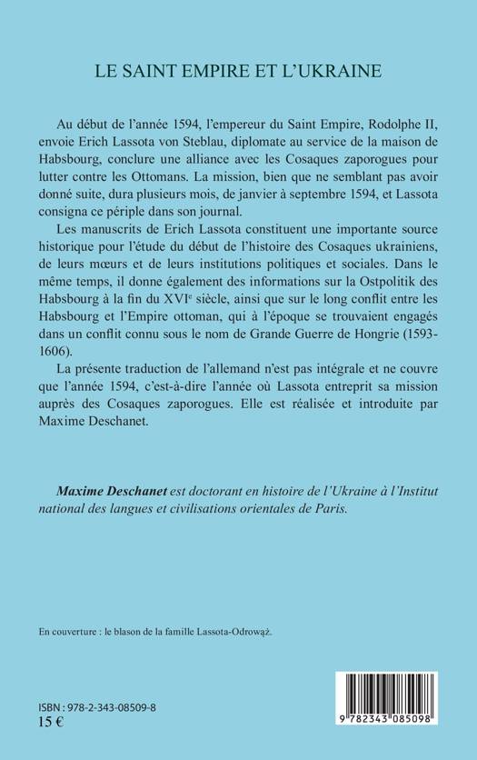 En 1594, l’Empereur du Saint Empire, Rodolphe II envoie Erich Lassota Von Steblau, diplomate au service des Habsbourg, conclure une alliance avec les Cosaques zaporogues afin de lutter contre les Ottomans. La mission, bien que semblant avoir échoué, dura plusieurs mois, de janvier à septembre 1594, et Lassota consigna ce périple dans son journal. Ces écrits constituent une importante source historique pour l’étude de l’Histoire des Cosaques ukrainiens, de leurs mœurs, de leurs institutions politiques et sociales ainsi que sur le conflit qui opposa les Habsbourg aux Ottomans.