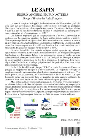 La forêt est l'emblème des Vosges. Le sapin unifie, mieux, identifie la contrée. Mais la pureté des peuplements engendre des problèmes. Problèmes sanitaires en raison de l'absence de cloisons végétales pour contenir les maladies, les attaques parasitaires. Problèmes commerciaux en raison d'une production insuffisamment diversifiée. Ces difficultés préoccupent également les voisins transalpins, helvétiques et germaniques, ainsi que l'aire scandinave. Le présent ouvrage compare diagnostics et solutions. Il révèle ainsi le Sapin européen dans tous ses états, au propre comme au figuré.