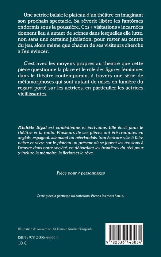 Une actrice balaie le plateau d’un théâtre en imaginant son prochain spectacle. Sa rêverie libère les fantômes endormis sous la poussière. Ces « visitations » incarnées donnent lieu à autant de scènes dans lesquelles elle lutte, non sans une certaine jubilation, pour rester au centre du jeu, alors même que chacun de ses visiteurs cherche à l’en évincer. C’est avec les moyens propres au théâtre que cette pièce questionne la place et le rôle des figures féminines dans le théâtre contemporain, à travers une série de métamorphoses qui sont autant de mises en lumière du regard porté sur les actrices, en particulier les actrices vieillissantes.