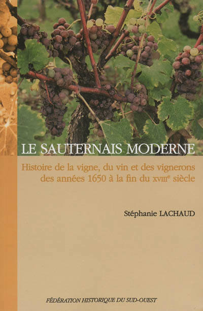 Entre les années 1650 et la fin de l'Ancien Régime, le vignoble bordelais connut une période inédite d'essor et de transformations, liée à la prospérité de la ville de Bordeaux ainsi qu'à la forte demande en vins au niveau européen. Le Sauternais participa largement à la mise en place d'une production viticole reconnue pour sa qualité autant que pour son identité. Volontairement localisée, l'étude du vignoble de la région de Sauternes permet de saisir au plus près les mutations d'un espace productif, pour en comprendre les mécanismes, les modalités et les limites sur un siècle et demi d'étude. La production et le commerce du vin structuraient les espaces autant que l'organisation de la société rurale. En effet, même si la polyculture restait très présente, la vigne régissait une bonne part des activités économiques : elle animait largement la circulation des biens fonciers et transforma peu à peu les structures seigneuriales traditionnelles en châteaux viticoles. L'analyse de l'amélioration des techniques de culture et de vinification montre une diffusion socialement différenciée, souvent initiée par les élites puis transmise ou imposée au petit monde de la vigne et du vin. Par ailleurs, même si la proximité avec la ville de Bordeaux joua un rôle prépondérant dans le développement de ce vignoble, grâce aux commodités du transport fluvial et aux investissements de la noblesse et de la bourgeoisie urbaines, il convient de souligner les dynamiques économiques locales. Cette étude à petite échelle permet donc de réinterroger en profondeur le rural, en pointant l'originalité de cet espace viticole. Mais elle offre également l'occasion de montrer qu'il n'est pas si différent des autres campagnes du royaume et qu'il appartenait fondamentalement au monde rural d'Ancien Régime.