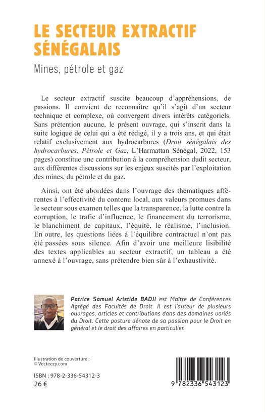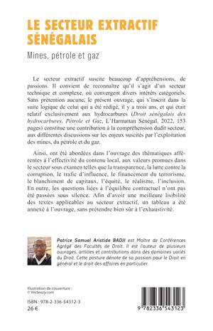 Le secteur extractif suscite beaucoup d’appréhensions, de passions. Il convient de reconnaître qu’il s’agit d’un secteur technique et complexe, où convergent divers intérêts catégoriels. Sans prétention aucune, le présent ouvrage, qui s’inscrit dans la suite logique de celui qui a été rédigé, il y a trois ans, et qui était relatif exclusivement aux hydrocarbures (Droit sénégalais des hydrocarbures, Pétrole et Gaz, L’Harmattan Sénégal, 2022, 153 pages) constitue une contribution à la compréhension dudit secteur, aux différentes discussions sur les enjeux suscités par l’exploitation des mines, du pétrole et du gaz. Ainsi, ont été abordées dans l’ouvrage des thématiques afférentes à l’effectivité du contenu local, aux valeurs promues dans le secteur sous examen telles que la transparence, la lutte contre la corruption, le trafic d’influence, le financement du terrorisme, le blanchiment de capitaux, l’équité, le réalisme, l’inclusion. En outre, les questions liées à l’équilibre contractuel n’ont pas été passées sous silence. Afin d’avoir une meilleure lisibilité des textes applicables au secteur extractif, un tableau a été annexé à l’ouvrage, sans prétendre bien sûr à l’exhaustivité.